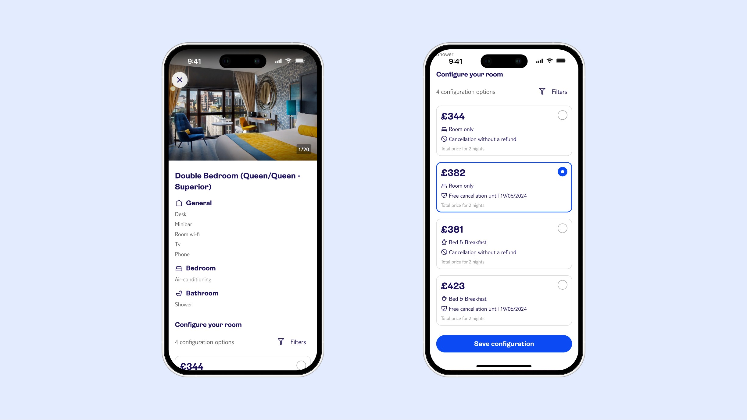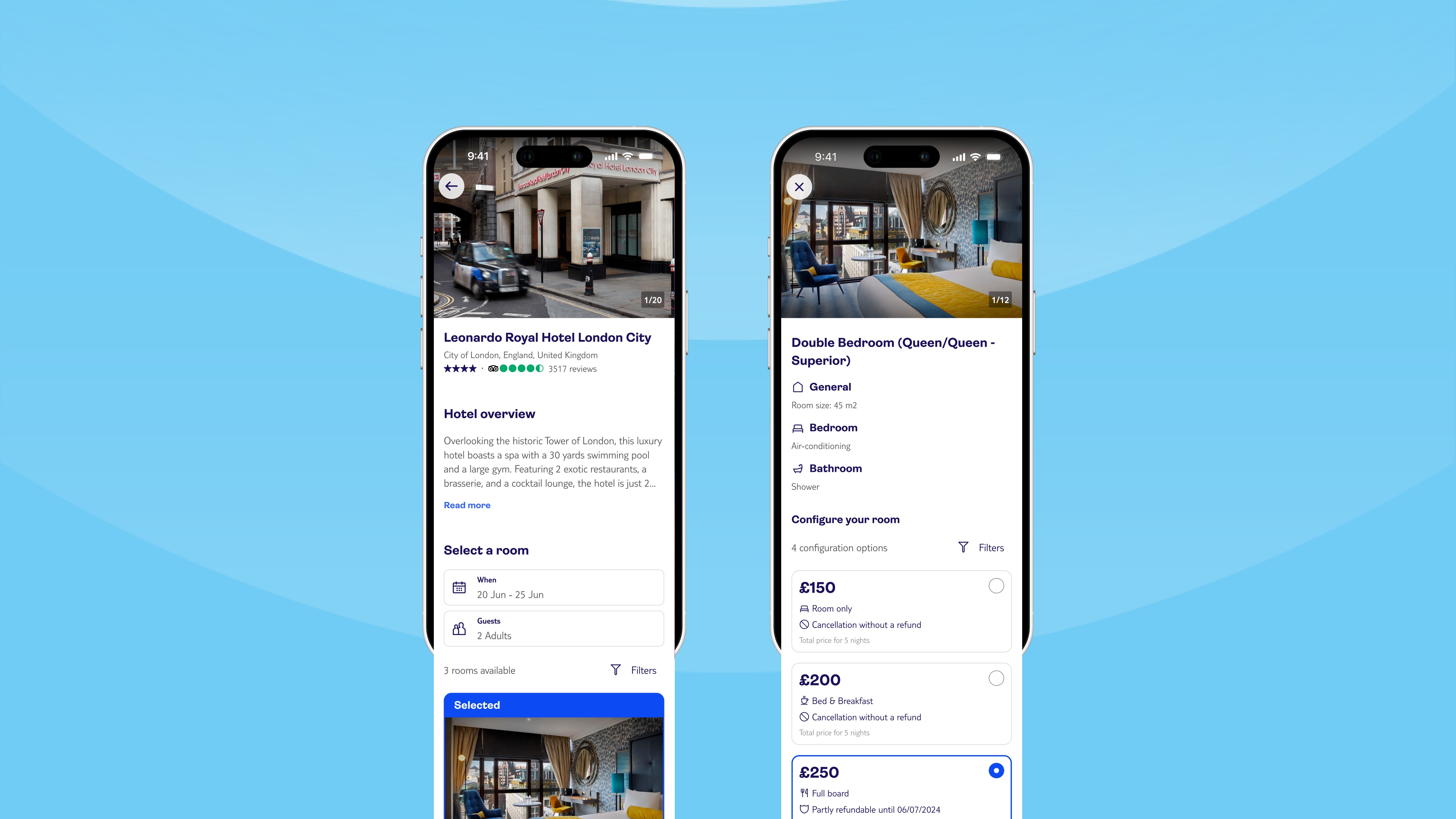 The opportunity was to simplify a complex decision without oversimplifying the product. Users needed to understand hotel details and configure their offer quickly, without losing context or confidence during the booking journey.