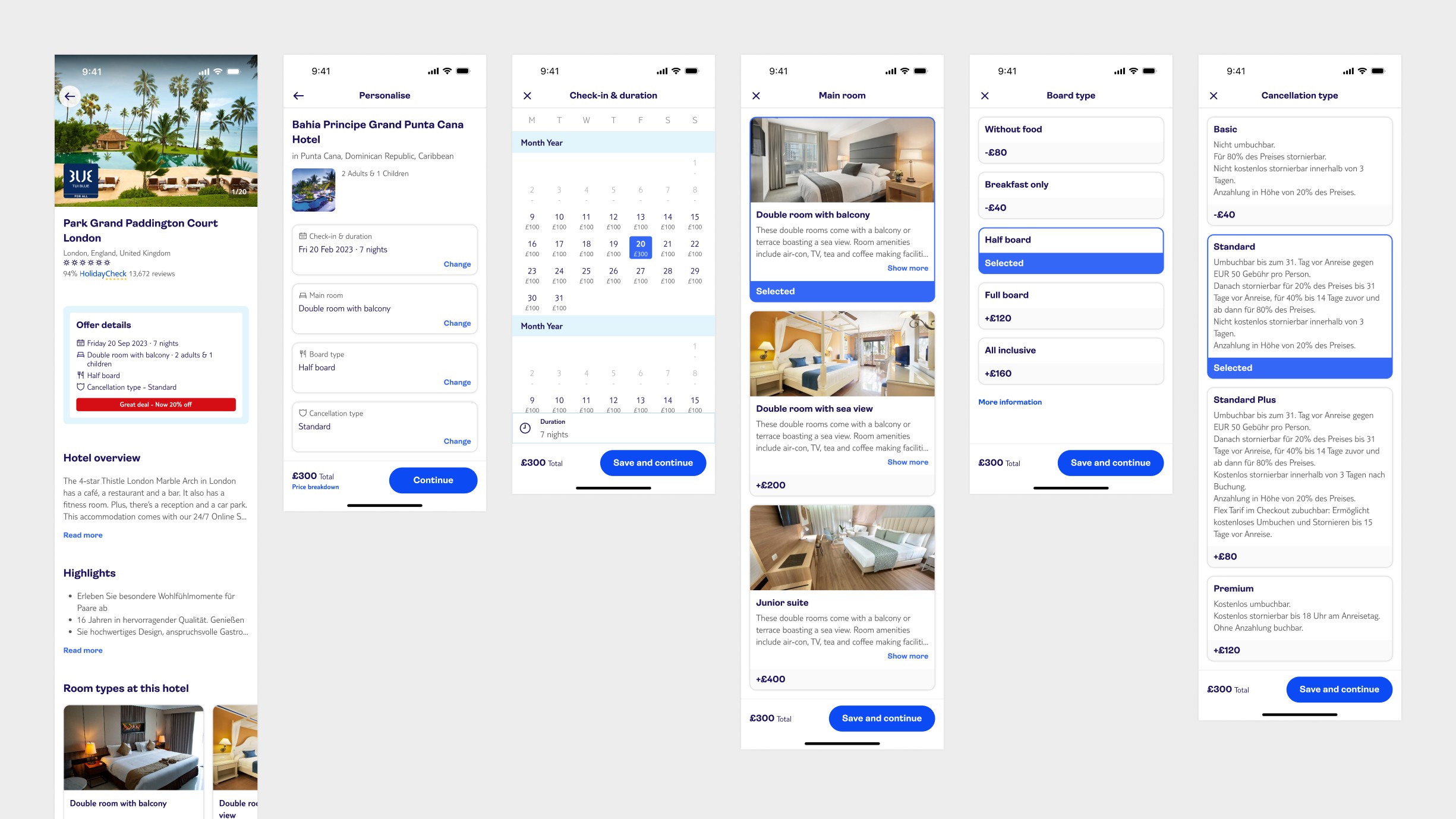 Hotel Details and Offer Configuration were handled inconsistently across products and markets. While the Web experience already combined information and configuration in a single page, several App experiences spread configuration across multiple screens, including in the Northern Region. This increased friction and made it harder for users to stay in context while comparing options.